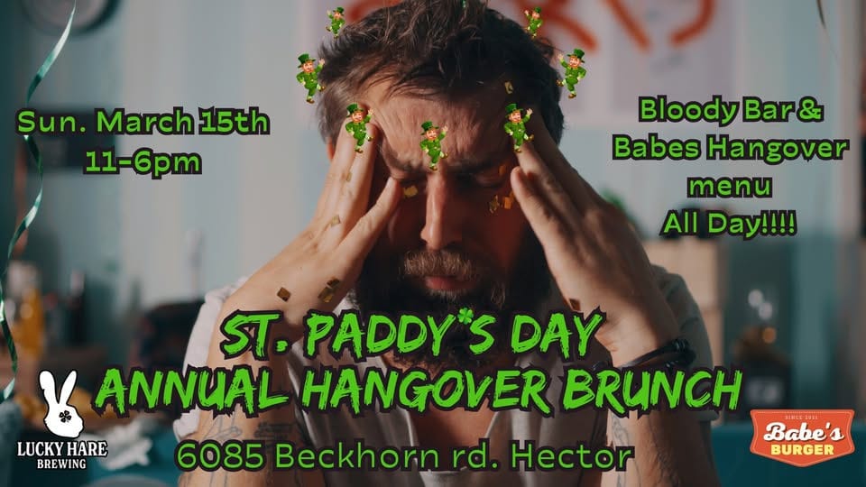 ![]() | Annual Hangover Brunch Ok so you went to the parade and stayed a little longer than expected. Head over to Lucky Hare for their annual St. Paddy's day hangover brunch! Enjoy a Bloody Mary bar and Babe's specialty hangover menu served all day. Open from 11am- 6pm. Come celebrate (and recover) with us! |