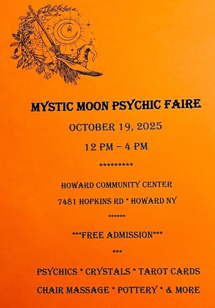 ![]() | Mystic Moon Psychic Faire Tarot cards, psychic readings, crystals, pottery, chair massages, and more! FREE admission. Visit the Howard Community Center Facebook page for all the information. |